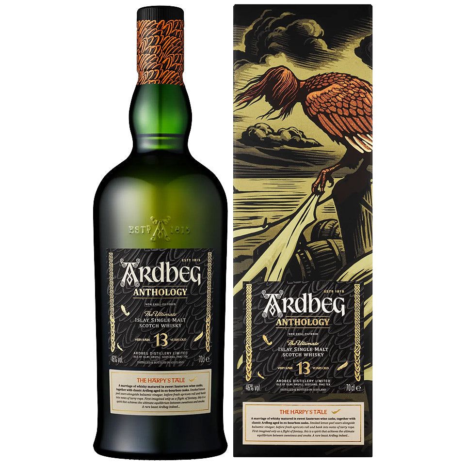Inspired by the seldom-seen Harpy – a winged beast said to inhabit Islay – this legendary edition is a first for the Distillery. The Harpy’s Tale has been matured for 13 years in rare Sauternes wine casks and married with classic Ardbeg ex-bourbon. After over a decade in the cask, soaring smoke swoops into sweetness as Ardbeg’s unmistakable character wrangles with the richness of the Sauternes casks. A supreme aged expression… the taste almost as sensational as the tale…