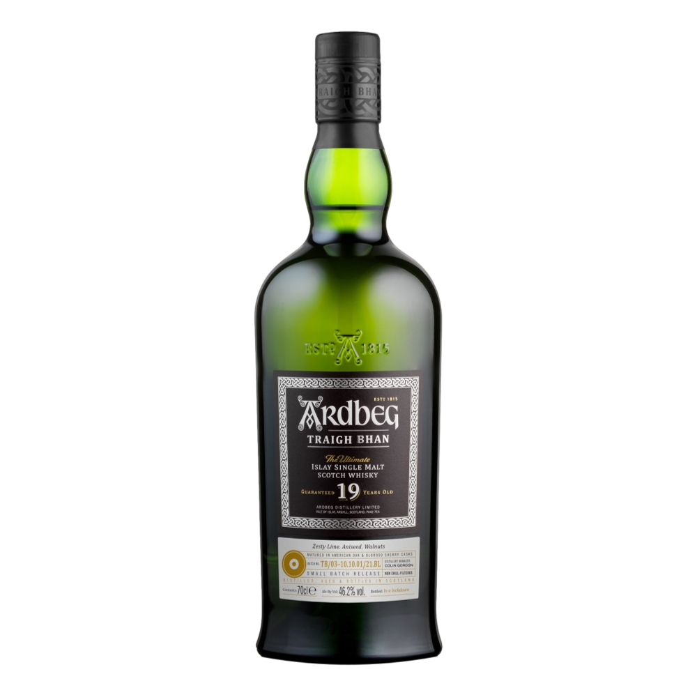 OUT OF THE DARK… AND INTO THE LIGHT. Matured in American oak and Oloroso sherry casks, this sublime 19 year old whisky is the epitome of an aged Ardbeg. Part of a highly sought-after and collectable Ardbeg series, 19 Years Old Batch 3 is the latest expression. This sublime third batch is, like the bottles before it, is inspired by Islay’s Traigh Bhan beach. Ardbeg Traigh Bhan masterfully performs the impossible – balancing the lull and crescendo of its intense flavours. However, the story behind this rare aged liquid is what truly sets it apart…A whisky resigned to the furthest reaches of the Ardbeg Warehouse, Ardbeg Traigh Bhan 19 Years Old Batch 3 was one of the only spirits in the Distillery’s history to be bottled in the midst of a global lockdown. Having spent months on end behind closed doors, this unprecedented bottling is now ready to come out from the dark… and into the light. Non chill-filtered at 46.2% ABV.