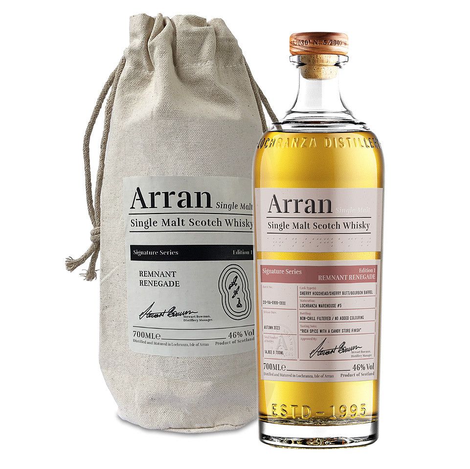 ‘Remnant Renegade’ is the first bottling of this edition. It is a marriage of a selection of remnant casks - Ex-Sherry Hogsheads, Ex-Sherry Butts and Ex-Bourbon Barrels from across the Arran portfolio between as early as only a couple of years after we started distilling to as recently as 2017. Specially selected and blended by Distillery Manager Stewart Bowman bearing his seal of approval. Distilled and matured at Lochranza.