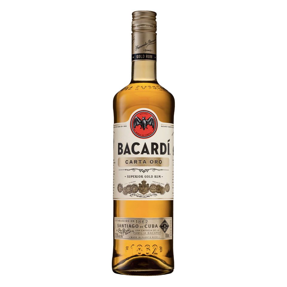 Bacardi Carta Oro Superior Gold Rum is smooth and sweet with vanilla and toasted almond flavours. Aged in white oak and filtered through charcoal like fine vodkas, Bacardi Oro is one of the cleanest tasting rums you will find.