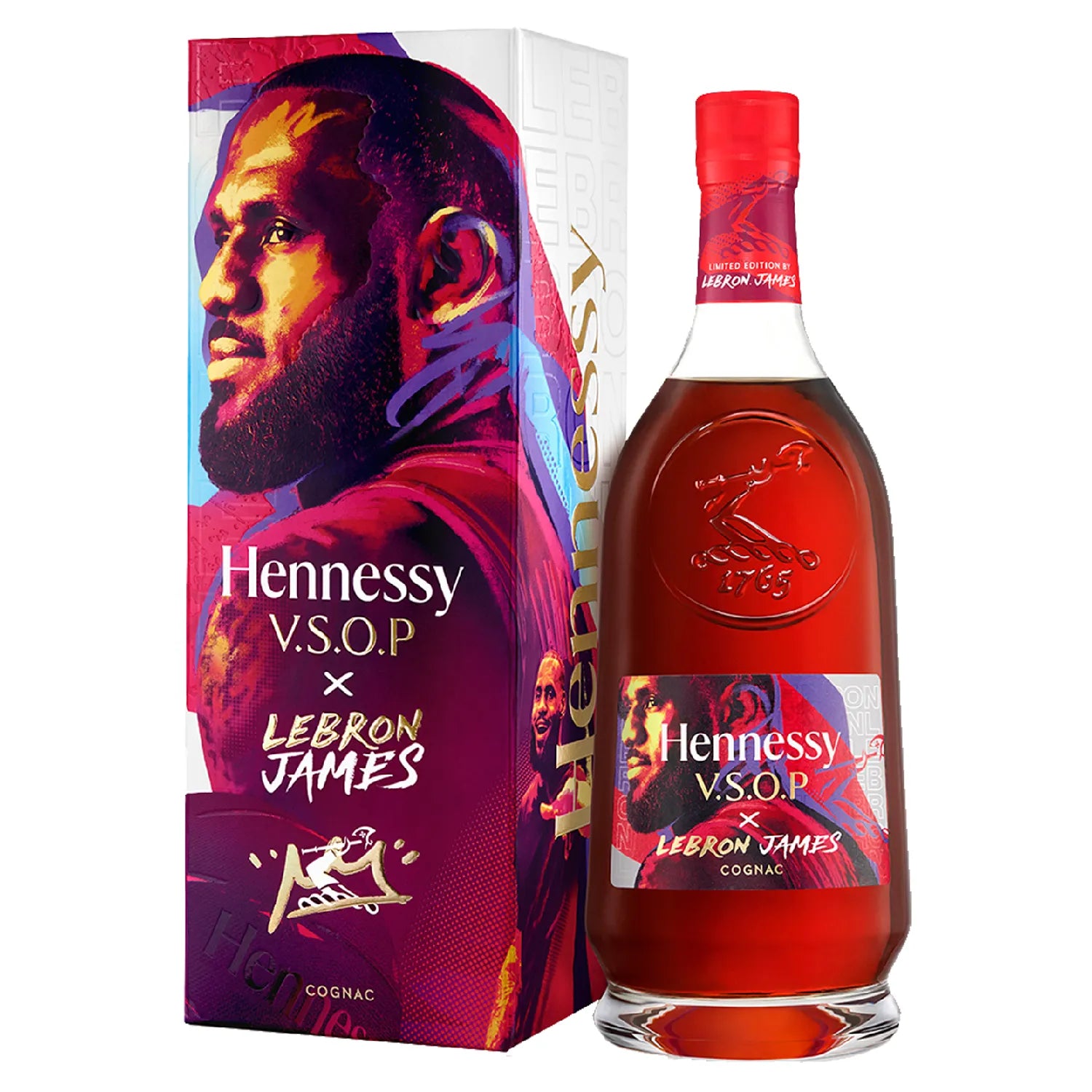 The Hennessy V.S.O.P x Lebron James Limited Edition celebrates two icons dedicated to excellence and community. The edition features the legend's portrait gazing into the distance, evoking Hennessy's spirit of bold innovation. The red hues echo the blend’s colour. V.S.O.P is a cognac of remarkable consistency and vitality, conveying Hennessy's master blenders’ savoir-faire that ensured the continued success of this harmonious assemblage for 200 years.