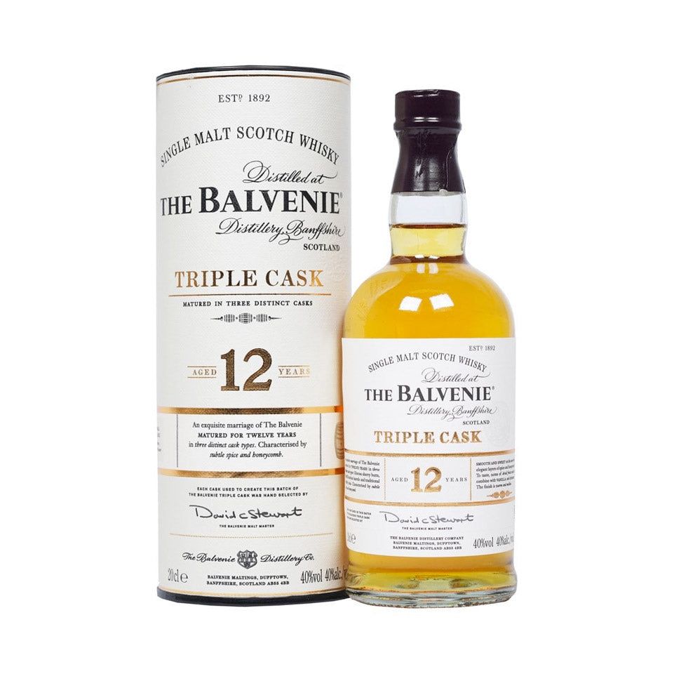 The Balvenie Triple Cask range comprises of 12 year old, 16 year old and 25 year old single malt whiskies. It is created by combining The Balvenie that has matured in the three most traditional types of cask – first-fill bourbon, refill bourbon and sherry – in a large wooden vessel known as a marrying tun.