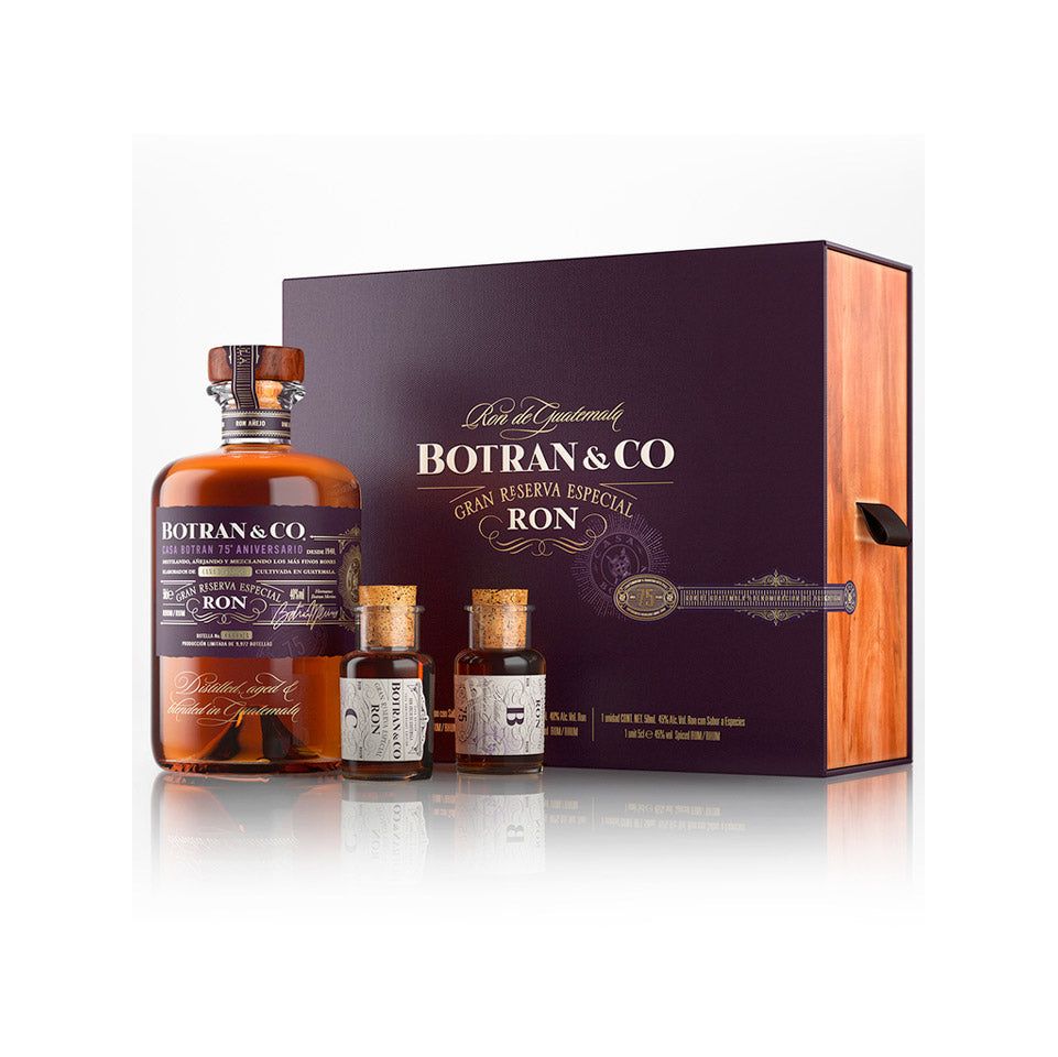 Special edition limited by the 75-year history of the distilleries in Guatemala of the Ron Botran accompanies this luxury case a bottle numbered Ron Botran 75th anniversary, a unit of rum and citrus flavour 50mL, a unit of flavoured rum Species, a pipette and booklet with the history of Botran House.