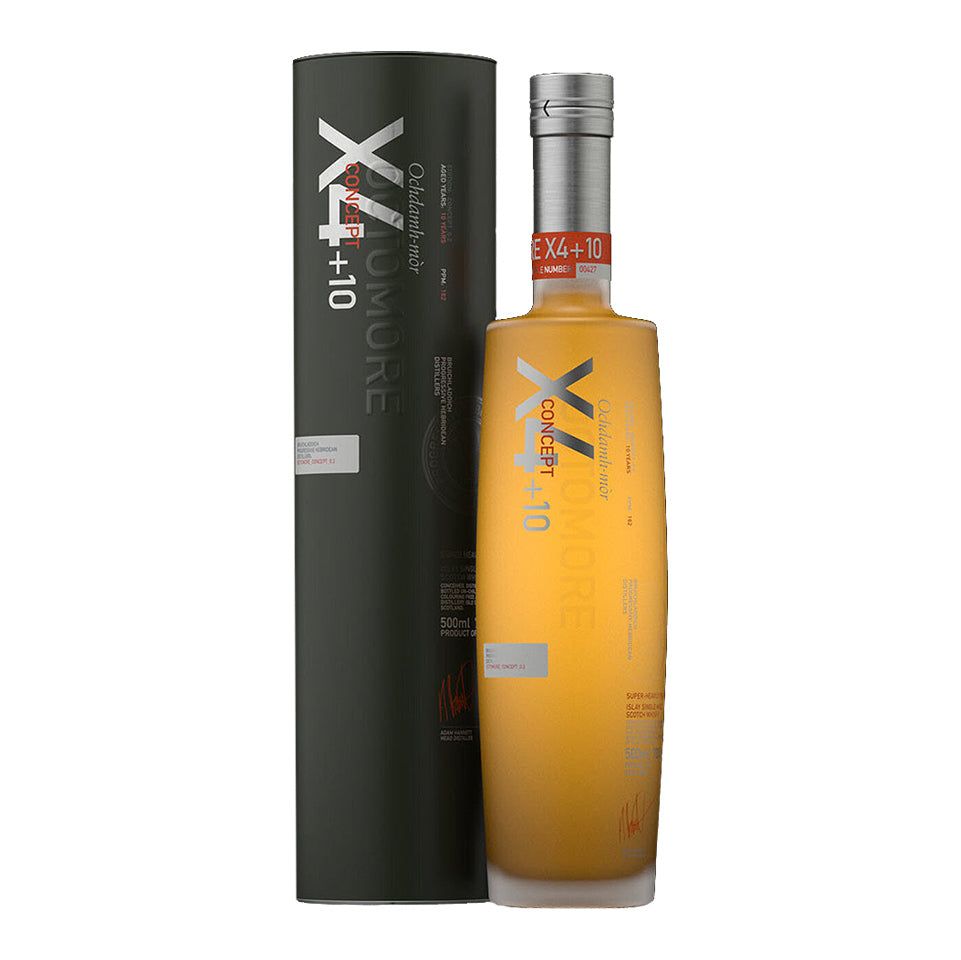 Octomore X4+10 is a limited edition release in Bruichladdich's super heavily-peated range. It's dubbed X4 as the single malt was distilled four times instead of two reaching an ABV of 89% after distillation. It was made with 100% Scottish-grown barley peated to 162ppm in 2007.