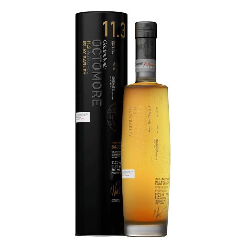 Comparing Octomore 11.1 and 11.3 gives one of our finest lessons in stratospheric smoke and barley terroir. While both editions are malted to a Brobdingnagian 100+PPM reading, the differences in barley character from the respective growing region is ever present. Our Octomore Islay barley is grown each year by friend and farmer James Brown, on Octomore farm itself. It is harvested, malted and distilled separately, even from our other Islay barley harvests, in order to become a single field, single vintage single malt.