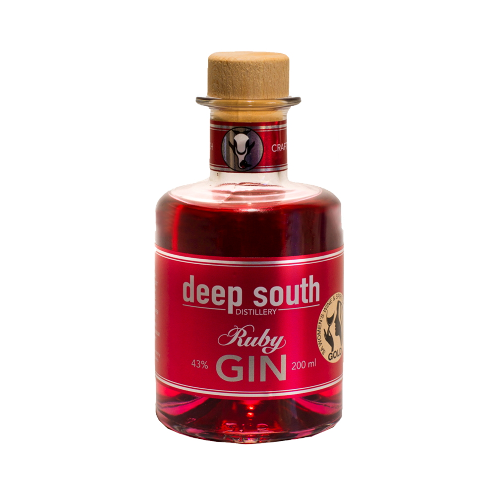 Ruby is a flavourful aromatic gin made in a contemporary floral style. Heady scents of rose and lavender blend with the deeper, darker fruity notes of honeybush lifted by the exotic scent of hibiscus. The colour is derived from an infusion with hibiscus flowers. This is a gin that invites exploration and is superb with flavoured tonics and abundant fruit for delicious cocktails with a contemporary style. Aroma: Top notes of rose and citrus on a scented herbaceous lavender background, spiked with sweet spice. Palate: Juniper and lavender combine on the mid-palate, encased in Turkish Delight flavours from the pelargonium. Complexity and density provided by the honeybush and spices. Finish: Deep berry jam and fynbos linger with sweet spice and persistent lavender. Botanicals: Ruby Gin contains juniper, coriander, angelica root, honeybush, lemon peel, orris root, cassia bark, lavender, elderberry, hibiscus and rose pelargonium. Comes in 200ml.