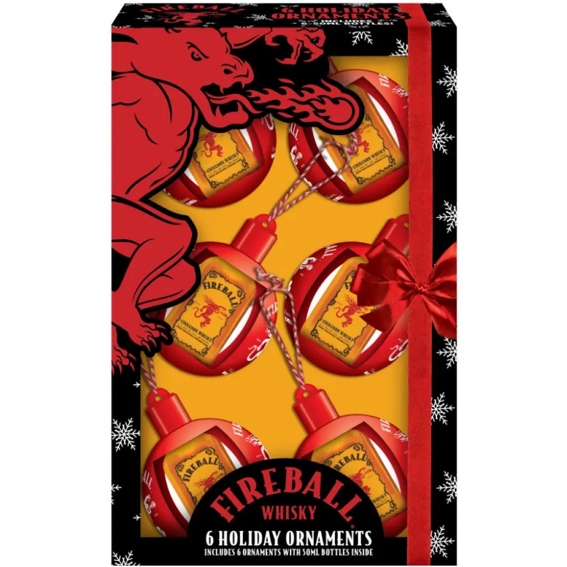 Pack contains 6 ornaments with a 50ml Fireball Cinnamon Whisky in each one.