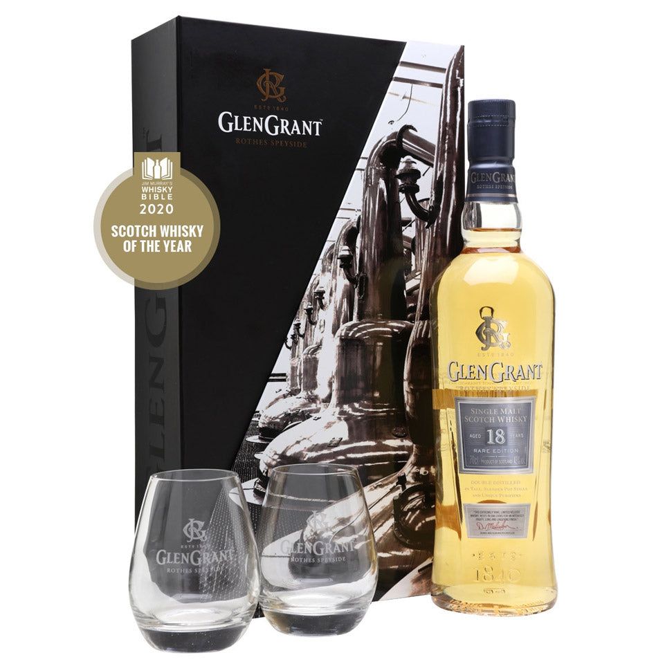 Part of Glen Grant's range, the 18 Year Old is rich and complex with notes of caramel, raisins and vanilla. This is presented in a stylish box with a pair of glasses. Winner of Jim Murray's 'Whisky of the Year 2020'.