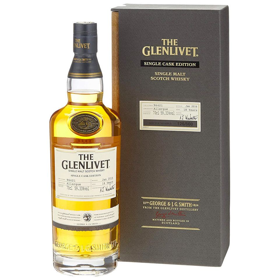 An 18 year old Glenlivet single cask, named “Allargue”. It was aged in cask #96421 until it was bottled in January of 2016, at a precise strength of 59.33% and with an outturn of 660 bottles.