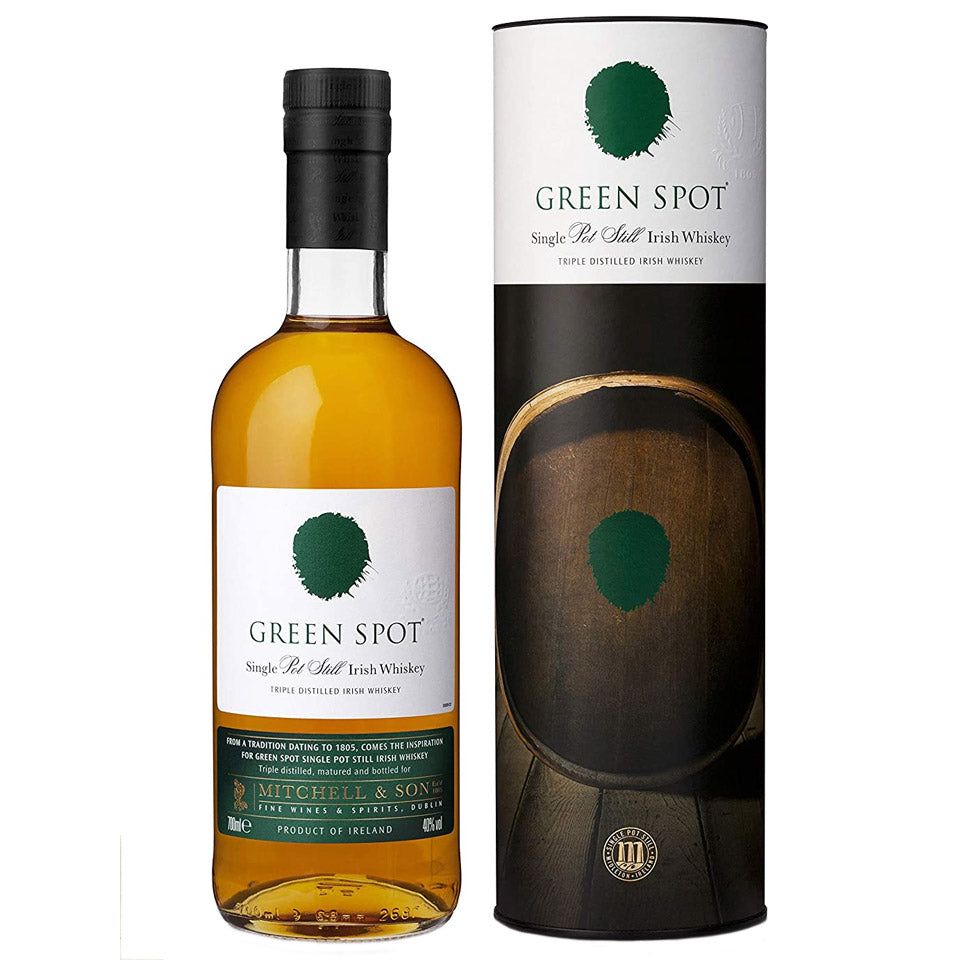 Green Spot is a blend of whiskies with an average age of 7 – 9 years distilled in a single pot still in Midleton, Co Cork. Its name relates to the old practice of marking barrels with a daub of colour representing a particular age.