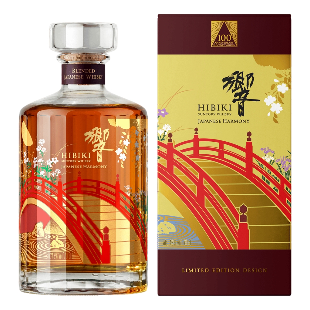 The bottle design of Hibiki Japanese Harmony 100th Anniversary Edition is inspired by our relentless pursuit of quality, ingenuity and expressiveness – rooted in “Monozukuri” craftsmanship and Japanese culture. A celebration of Suntory Whisky's centennial milestone, ​the design features a bridge with the traditional Japanese ​ art of Setsugekka – snow, moon and flowers to showcase ​the passing of seasons. The bridge is a connection to ​each of the four seasons connecting our past and future, ​in the hope that tradition and history won’t be forgotten, ​always to be respected as we look forward. The unique 24-faceted bottle represents 24 hours in a day, with 24 Japanese seasons in a year.