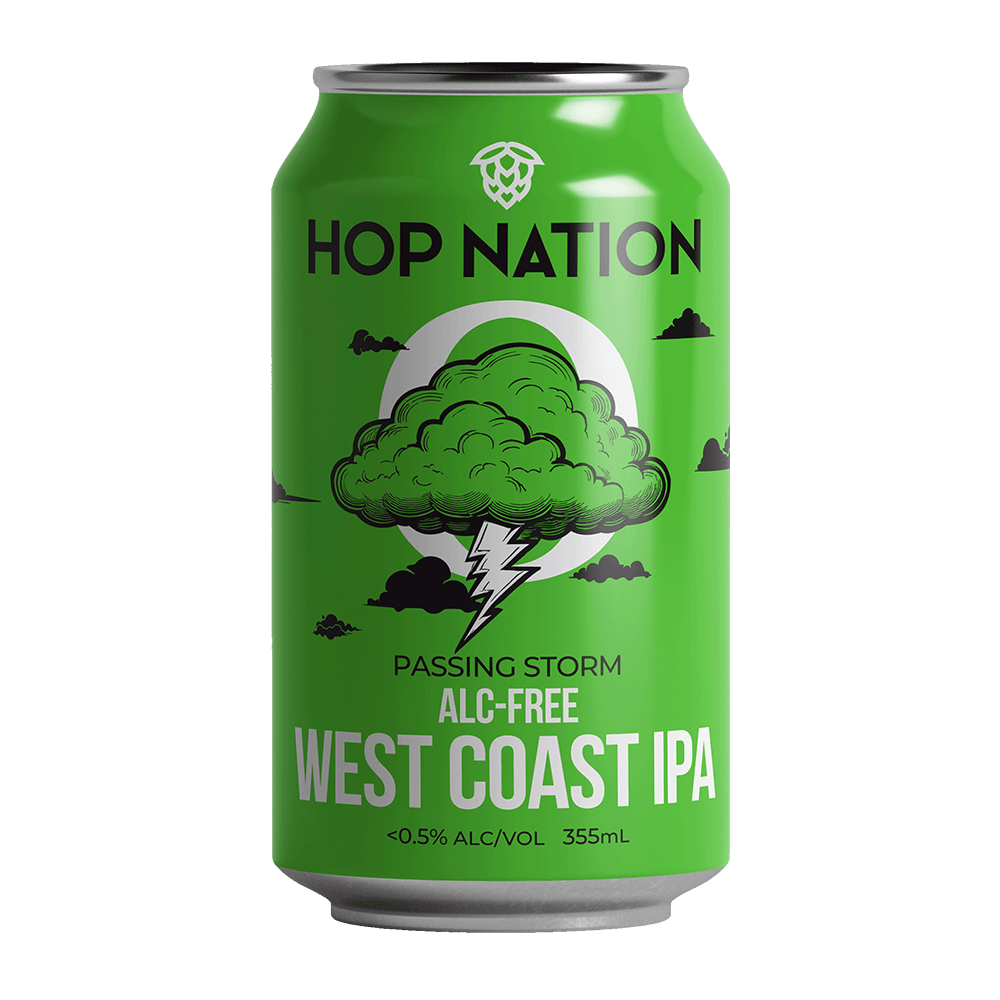 Introducing PASSING STORM | ALC-FREE WEST COAST IPA by Hop Nation, a limited edition brew that captures the essence of a true West Coast IPA.