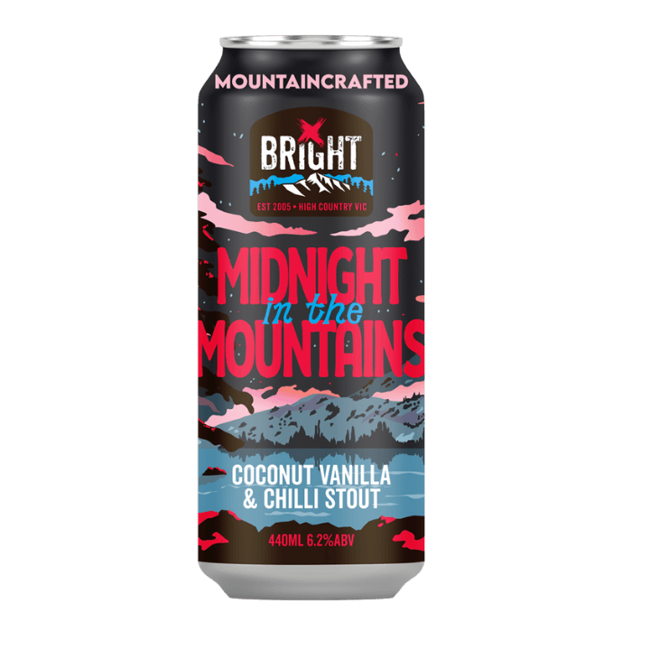 Introducing Bright Brewery's Midnight in the Mountains, a rich and daring Coconut Vanilla & Chilli Stout that captures the mystique of legendary alpine peaks. Inspired by the elusive creatures and ghostly tales of the mountains, this bold flavoured stout offers a perfect balance of sweetness, spice, and warmth. For those who prefer to experience the thrill of the dark from the comfort of home, this brew delivers a dangerously smooth yet fiercely bold adventure in every glass.