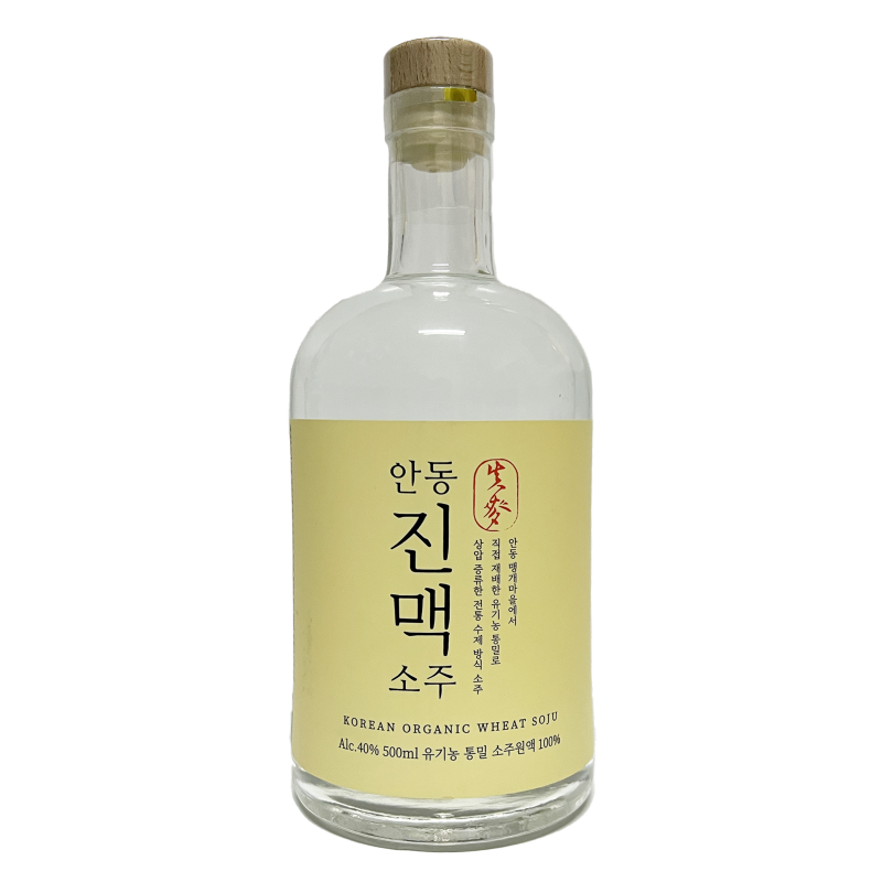 Jinmaek Soju, a soju made from organic wheat made by themselves that has a different charm from traditional soju made from rice. It is an alcohol that has the unique floral fragrance of wheat, and it takes two years to make a bottle.