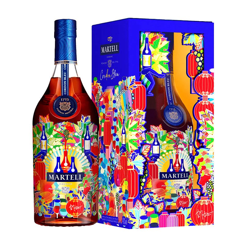 Martell Cordon Bleu Limited Edition Lunar New Year 2025, with a vibrant packaging, designed by Chinese contemporary artist Wu Jian’an.