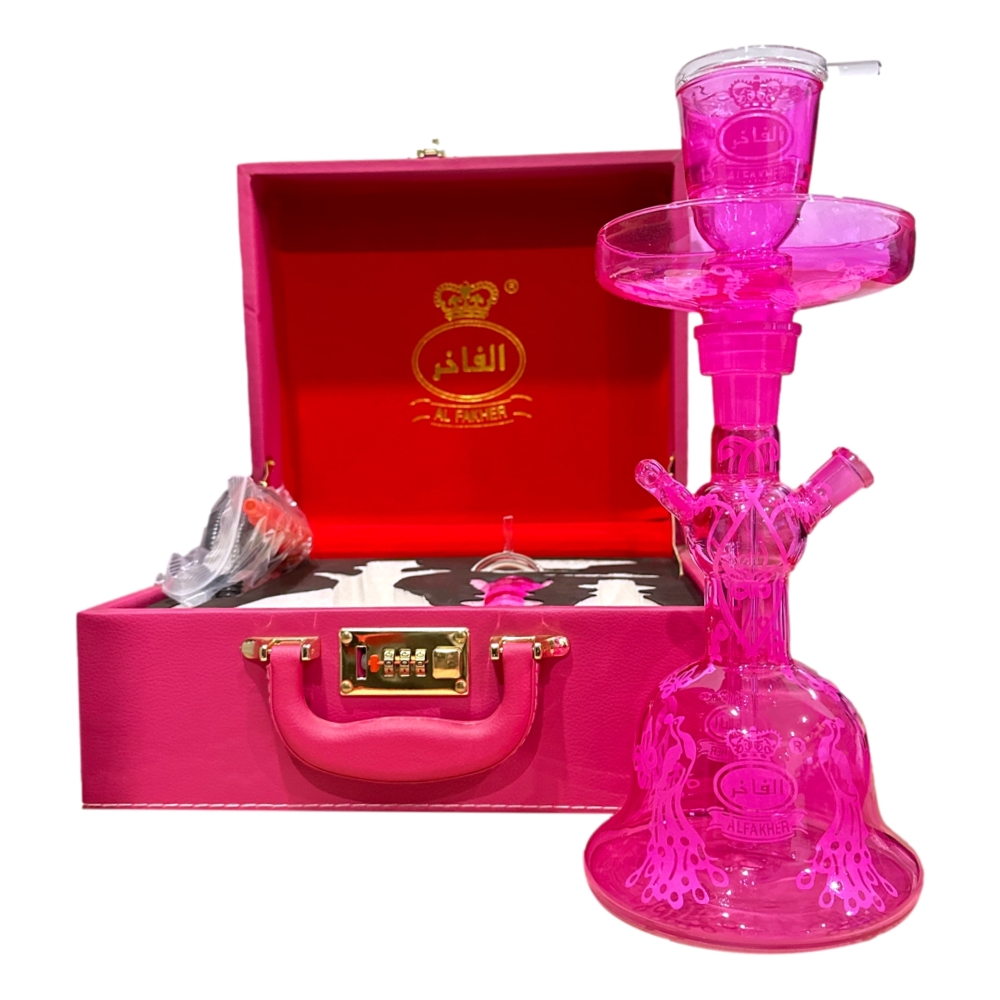 Al Fakher Pink Glass Hookah Shisha Complete Set & Travel Case