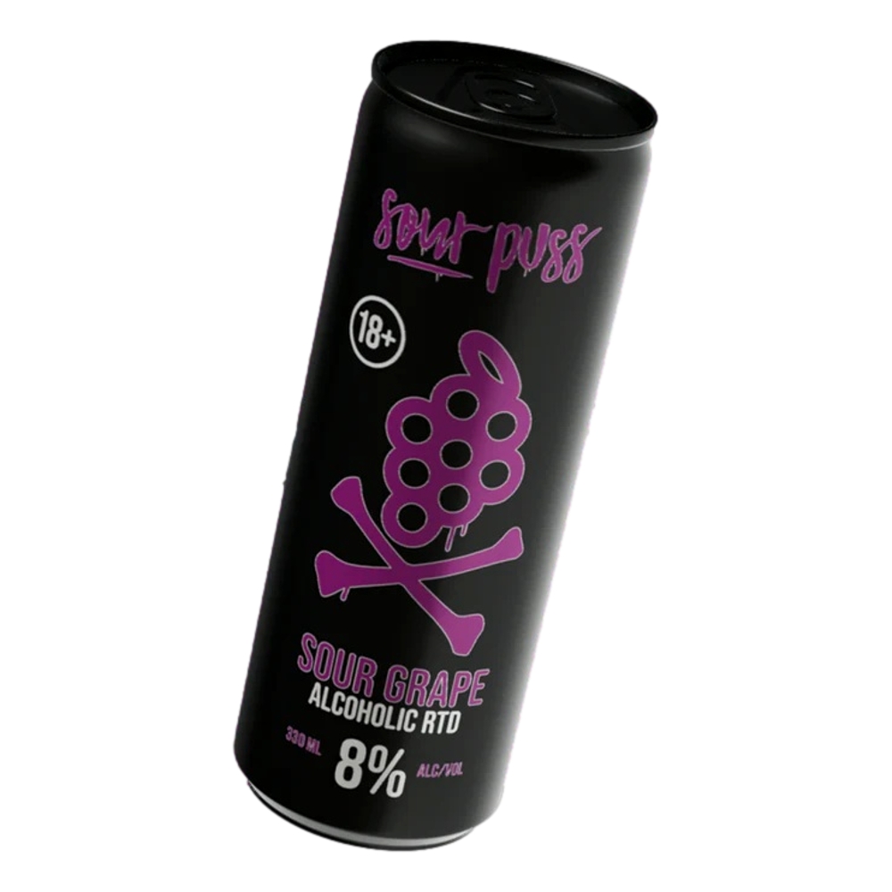 Introducing Sour Puss Grape, an electrifying 8% alcoholic RTD. Packed into each 330ml can is a potent mix of tangy grape flavors crafted for high-tempo occasions. With just a sip of this, you're in for a guaranteed night of fun. Best Served Cold.