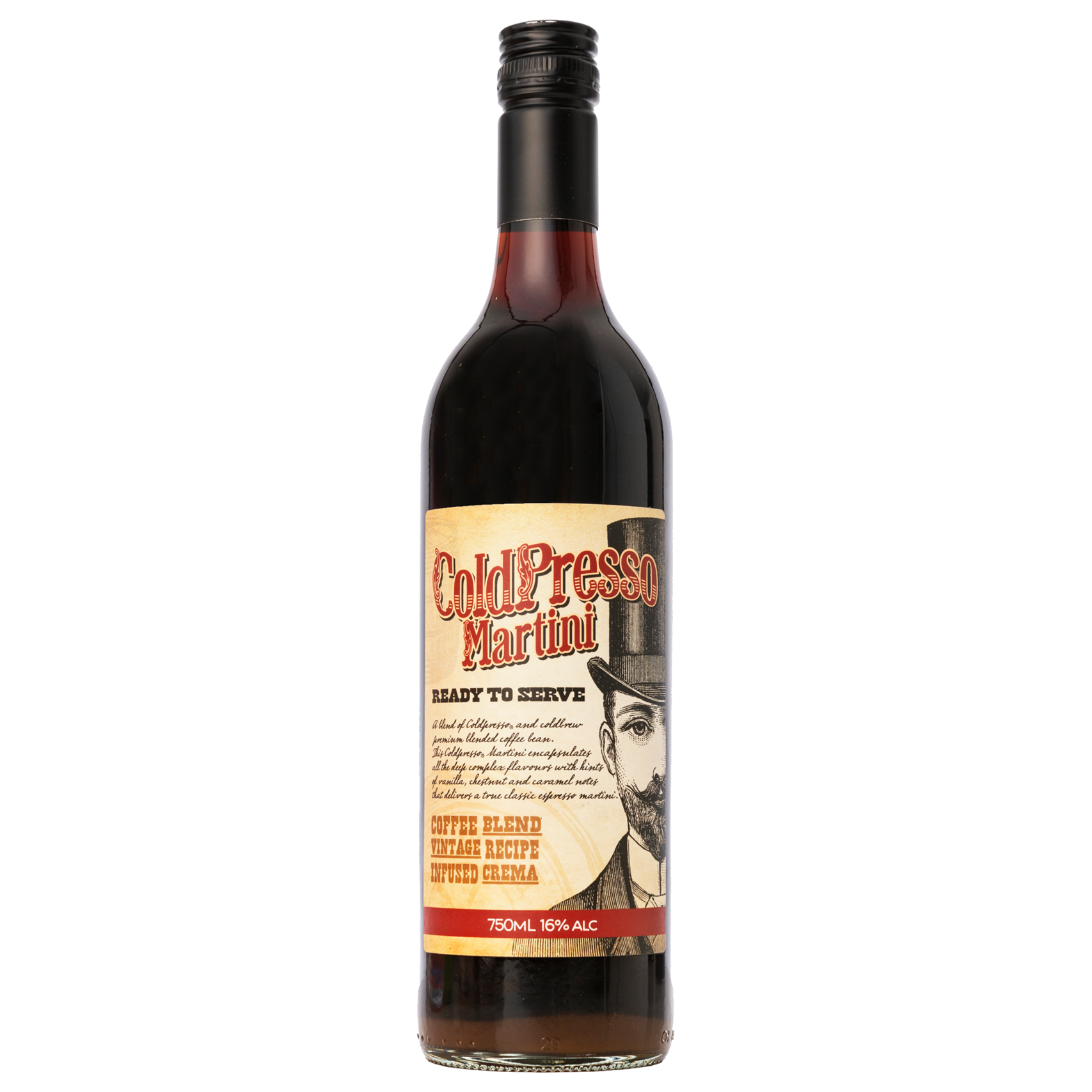 Ready to serve Espresso Martini created with Coldpressed coffee. With extracts of vanilla and chestnut, ColdPresso Martini is a complete authentic espresso martini that is ready for you to serve - complete with a rich crema.