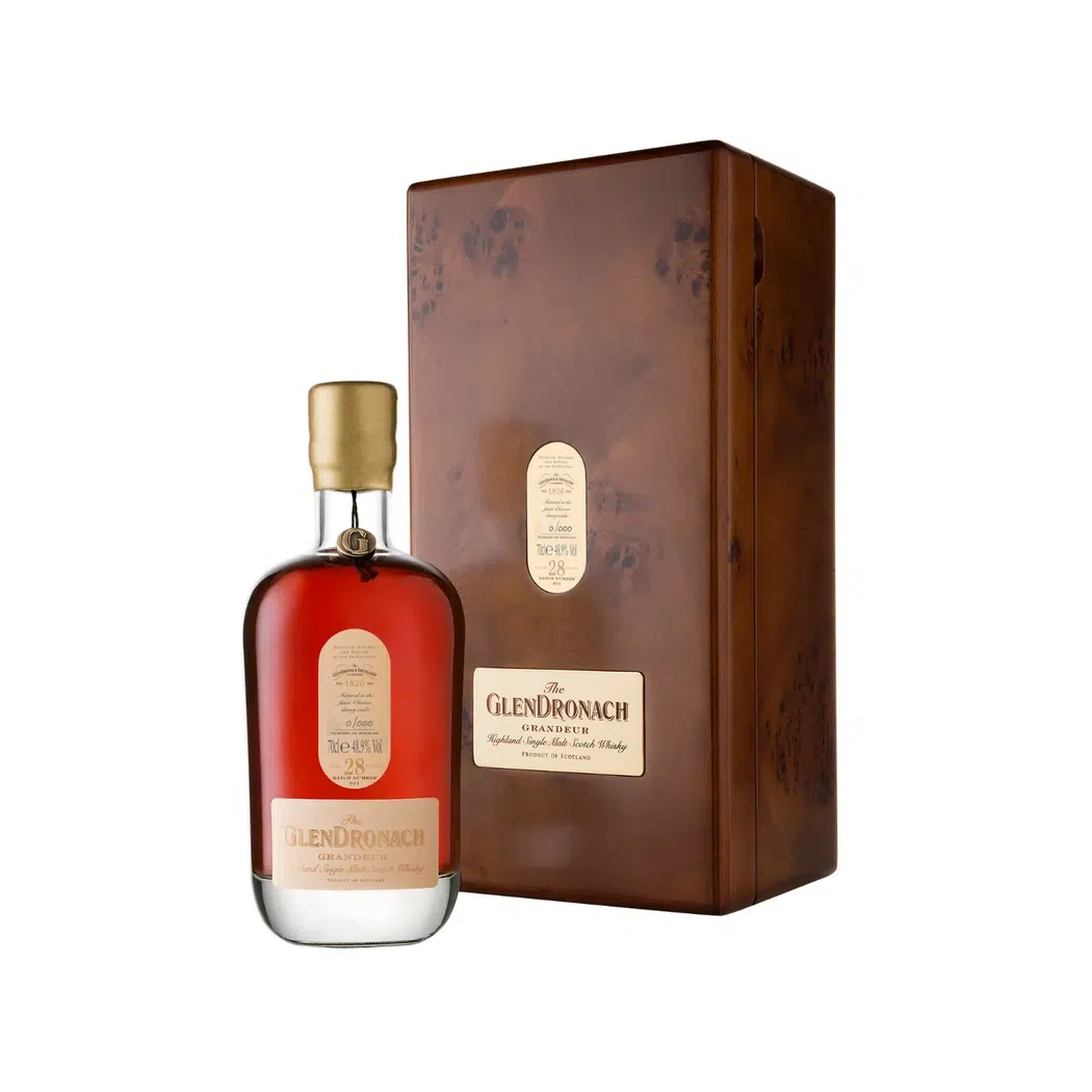 Glendronach Grandeur Batch 11 is a 28-year-old single malt that was matured in a small number of oloroso sherry casks, specially selected by master blender Dr Rachel Barrie. Aromas of dark manuka honey, roasted almonds and walnuts, baked plums, ginger, freshly-ground coffee and old leather fill the nose, complemented by notes of black cherry, espresso, dark chocolate, liquorice, leather, walnuts and dried fruit throughout the palate and lingering in the finish. Each bottle is individually numbered by hand as a reflection of its rarity. 3181 bottles are available globally.