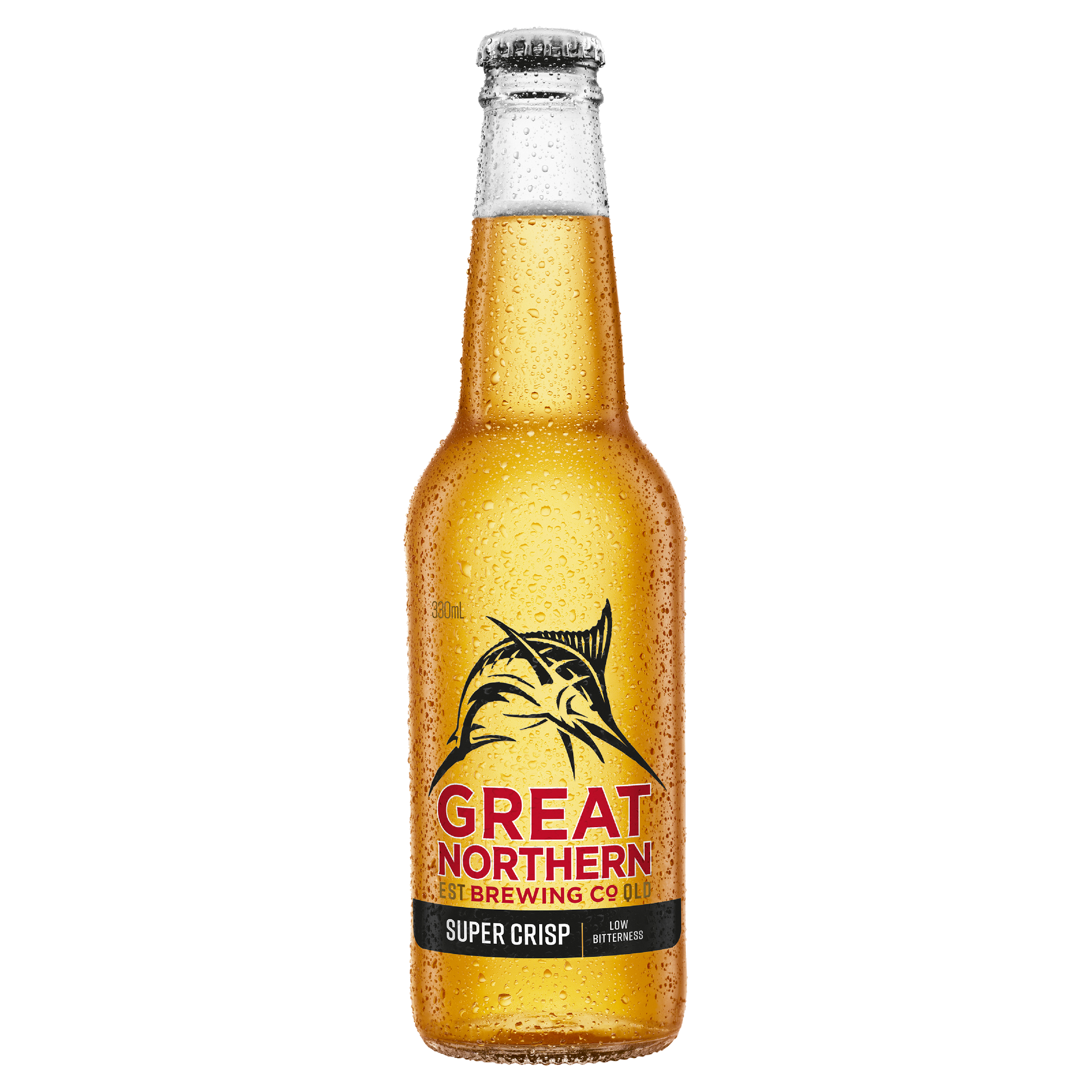 Great Northern Super Crisp lager was brewed with an outdoor lifestyle in mind. With its fruity aroma, low bitterness and clean, crisp finish, it's the ultimate refreshment for the Great Northern conditions. Brewed with Australian pale malt, lager yeast and a light stable hop and malt extract to produce a refreshing, crisp beer without compromising on taste.