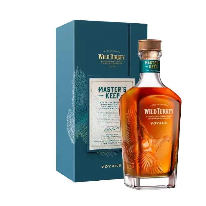 Experience the unique smoothness of Wild Turkey's limited edition Master's Keep Voyage Bourbon Whiskey. Aged 10 years, then finished with a 14-year-old Jamaican pot still rum cask maturation, this whiskey is an exquisite blend of the finest craftsmanship! Taste the rich, smooth, and balanced flavor of this one of a kind bourbon.