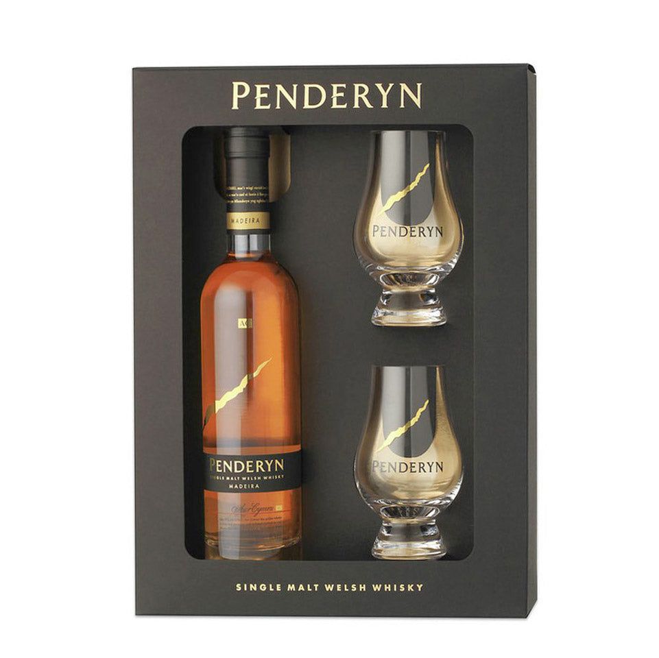 The Penderyn Madeira finish in the 350 ml bottle in an elegant gift pack with two Glencairn glasses.