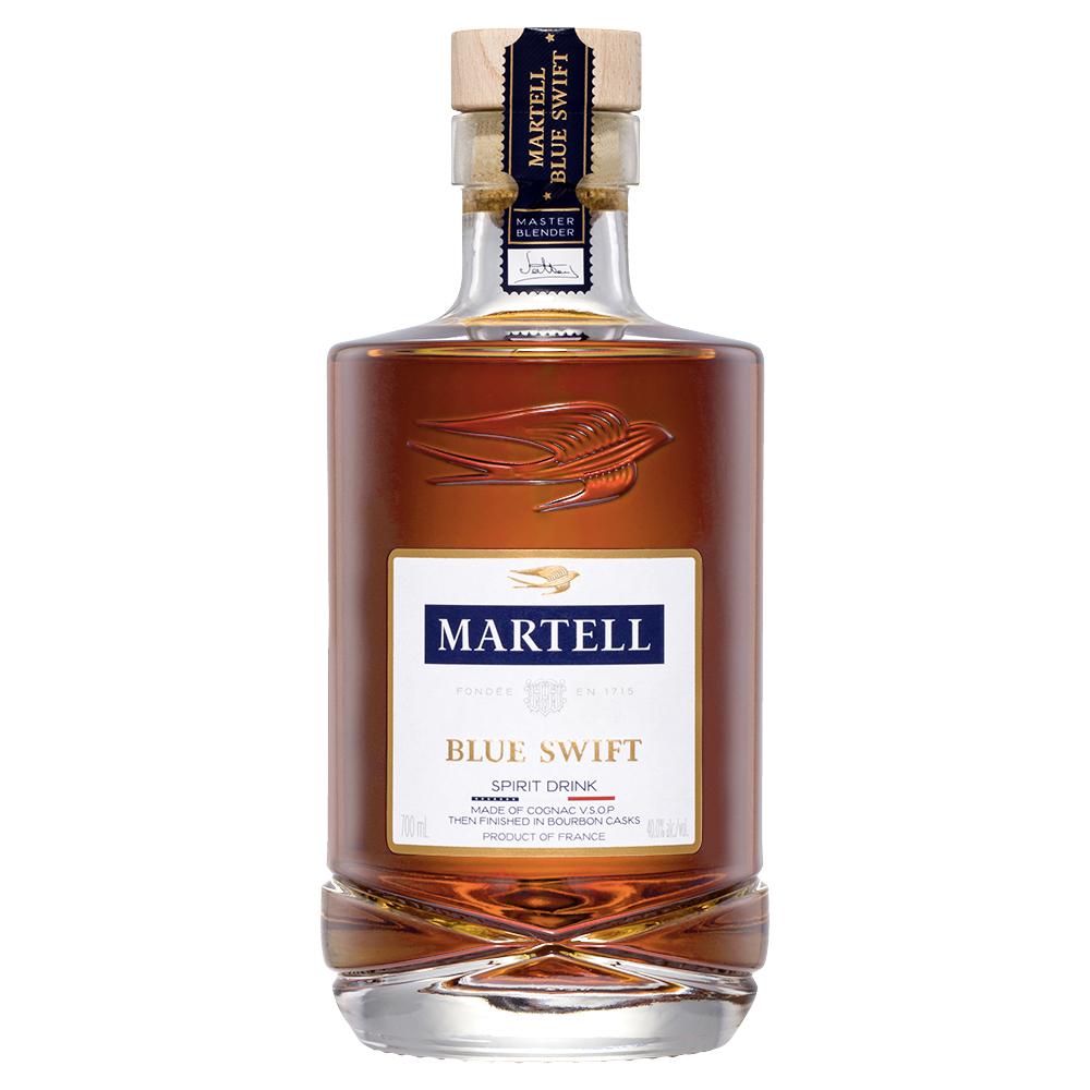 Martell Blue Swift is the first-ever spirit drink made from cognac VSOP matured in French oak barrels and finished in United States bourbon casks.