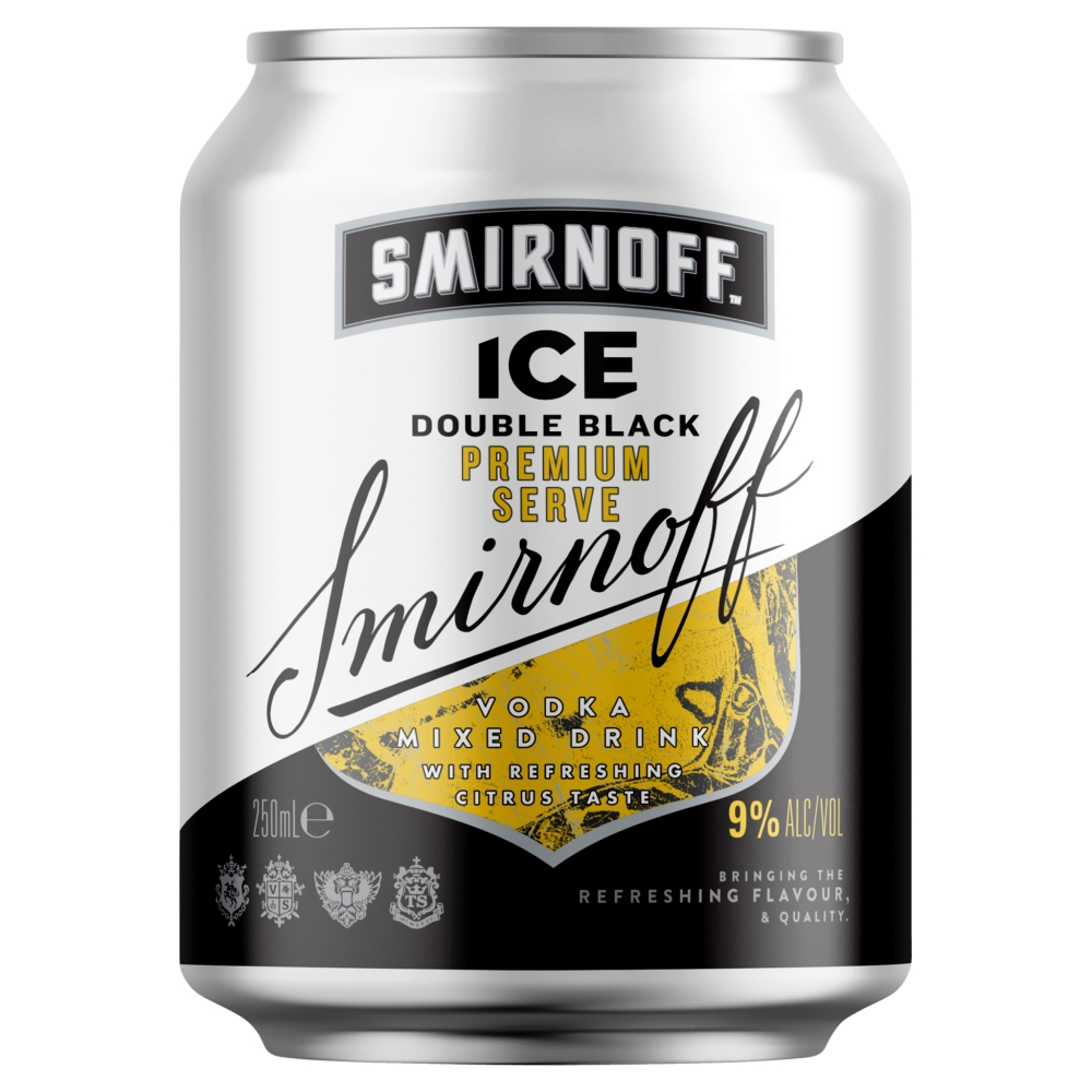 Smirnoff Ice Double Black Premium Serve delivers that signature Smirnoff Ice Double Black refreshing citrus taste with less mixer.