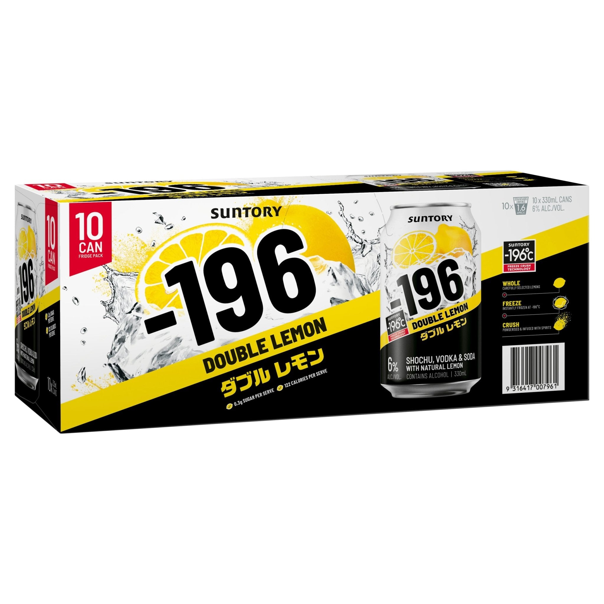 -196 Double Lemon is made from Shochu, Vodka, soda and lemon, and uses Suntory’s unique Freeze Crush Technology™ that freezes and crushes real fruit to capture every bit of all-natural lemon flavour. With only 0.3 grams of sugar and 110 calories per can, -196 it the perfect drink option to kick start your night out.