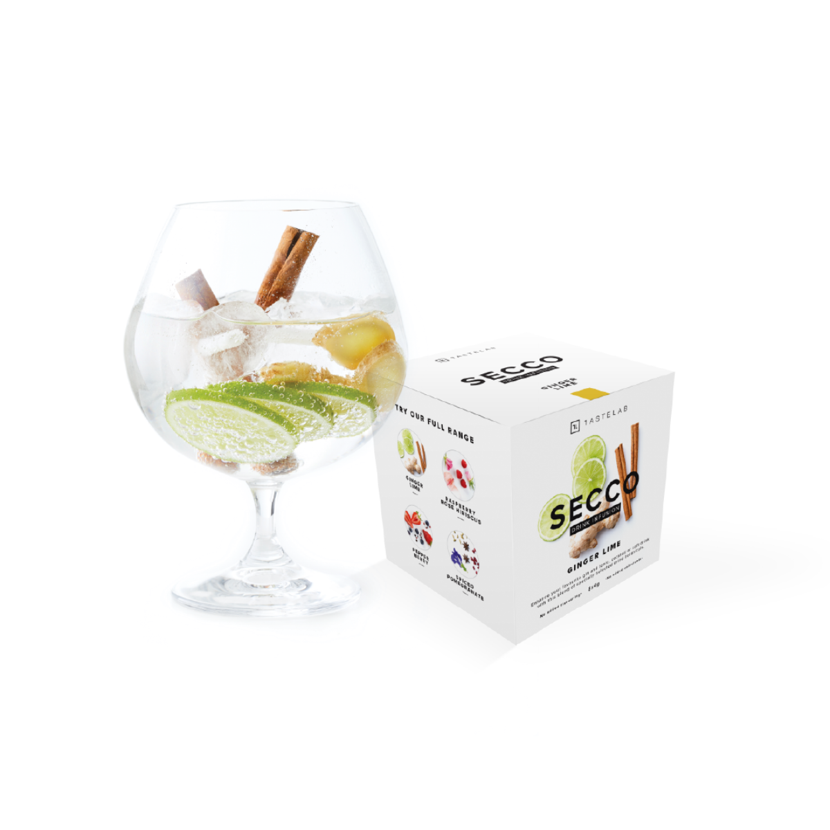 Secco Ginger Lime Drink Infusion has fragrant ginger and zesty lime with accents of earthy cinnamon. Secco is a blend of specially selected dried fruit and spices which allow you to naturally infuse a drink of your choice with flavour and colour. Simply add one sachet of your favourite Secco to a glass of gin and tonic, cocktail or soft drink and allow to infuse and enjoy.