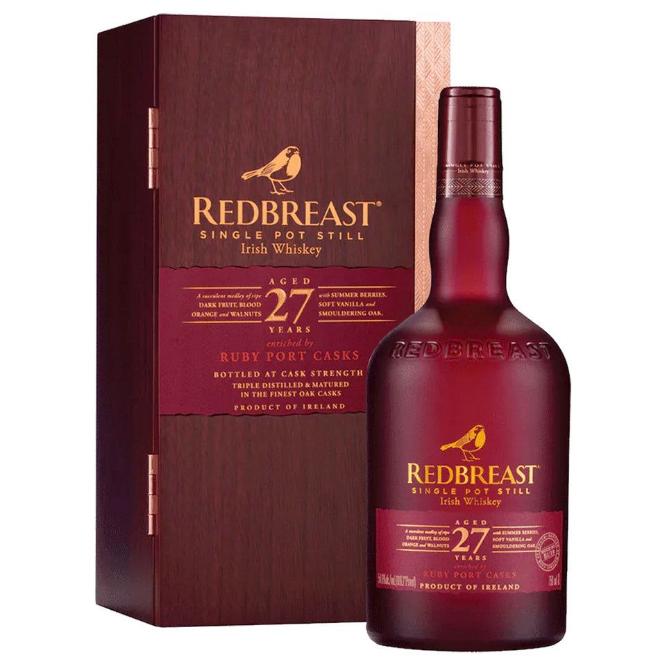 The oldest permanent release in the Redbreast family, 27-Year-Old is a Single Pot Still Irish Whiskey comprising exclusively of Pot Still whiskeys which have been triple distilled, matured in the finest bourbon, sherry and ruby port casks for no less than 27 years, and left untouched.