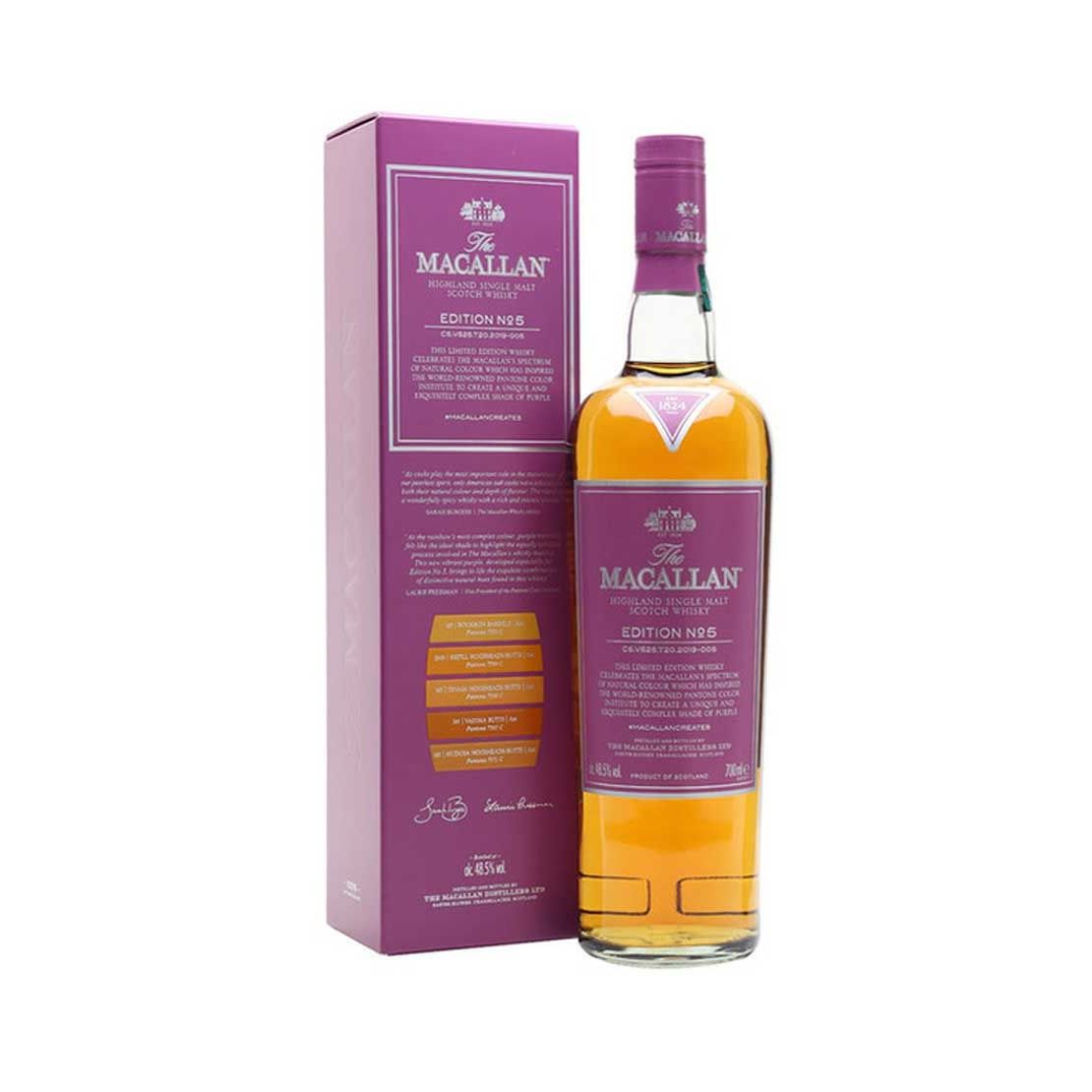 100% natural in colour, all of our exceptional whiskies from The Macallan are shaped from time spent in the very best casks; maturing, nurturing and developing character. World renowned colour masters at the Pantone Color Institute™ created a uniquely bold shade of purple; reflecting an enigmatic, multi-faceted and intricate combination of red and blue.