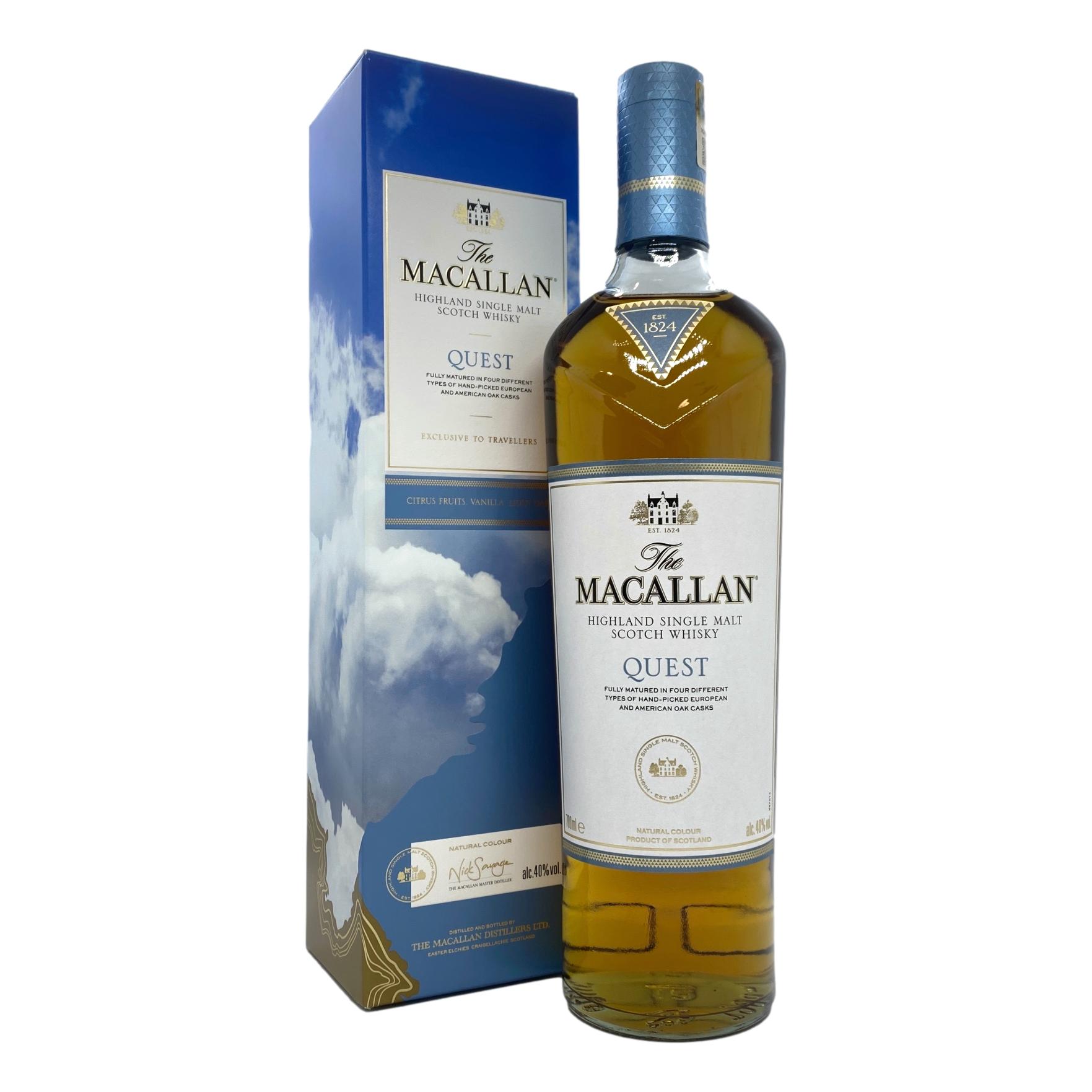 The Macallan Quest pays homage to the entirety of the journey taken by The Macallan to source the best oak across over 20,000 miles; concluding with the selection of four different but complimentary casks types to deliver a single malt whisky that creates a genuine expectation of further exploration and enjoyment.