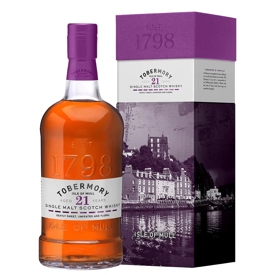 Joining our award winning 12 year old in the unpeated Tobermory whisky core range, this 21 year old is small batch produced at our distillery on the Isle of Mull. Distilled into whisky refill cask on the 16th of December 1999, this spirit was then transferred into Oloroso sherry casks on the 26th of February, 2015. The result is a beautifully sweet and vibrant dram. Like all our whiskies, this is non-chillfiltered and natural colour, with an abv of 46.3%, mirroring our other core range expressions.