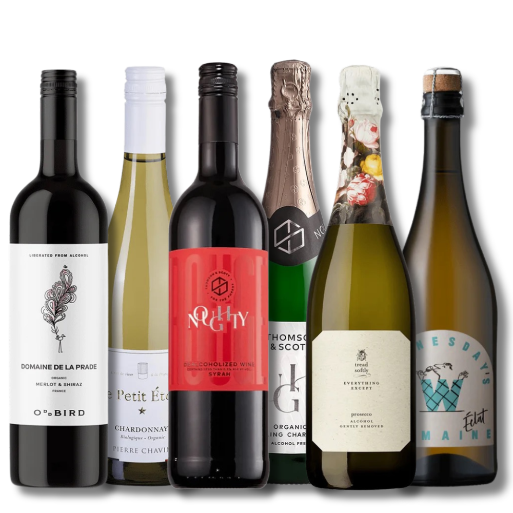 A curated journey through contemporary alcohol-free winemaking, the Wine Wanderlust Mixed Collection brings together six distinctive bottles spanning sparkling, white and red styles. From the fresh orchard fruit and gentle oak nuances of Le Petit Chardonnay to the dark berry depth of Noughty Rouge and Domaine de la Shiraz, this collection captures both brightness and structure without the alcohol.